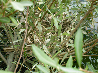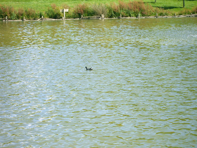 Galinha d'água (Gallus chloropus) que também responde pelo nome de galinhola, fotografada à distância, porque a máquina não ajuda e a ave é esquiva ( ela lá sabe porquê). A ampliação permite, no entanto, identificar a ave, pelas manchas brancas na cauda. registe-se que a ave é a dona do ninho reproduzido no "post" anterior.