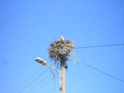 Qualquer local elevado (cimo das árvores, torres e até postes de electricidade) lhe serve para construir os seus ninhos, por norma, de grandes dimensões.
