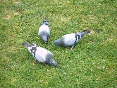 Em primeiro plano, duas gaivotas em interacção. Em segundo plano, uma outra gaivota-argêntea (Larus cachinnans) com ar de poucos amigos (ciumenta?).