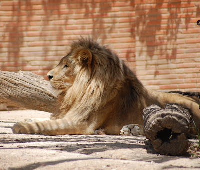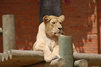Nas imagens, uma Leoa (Foto 1) e um Leão (foto 2) da espécie Panthera leo L., (subespécie Panthera leo bleyenberghi) fotografados no Jardim Zoológico de Lisboa. O Leão pertence à Classe dos Mammalia; Ordem: Carnivora; Família:Felidae; Género: Panthera.