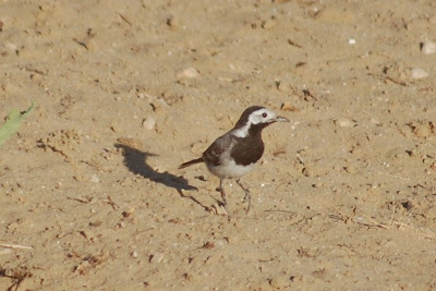 Juvenil de Alvéola-branca-comum, subespécie europeia ( Motacilla alba alba)  a demonstrar que também esta espécie já se reproduziu este ano, pelo menos na região a Sul do Tejo.